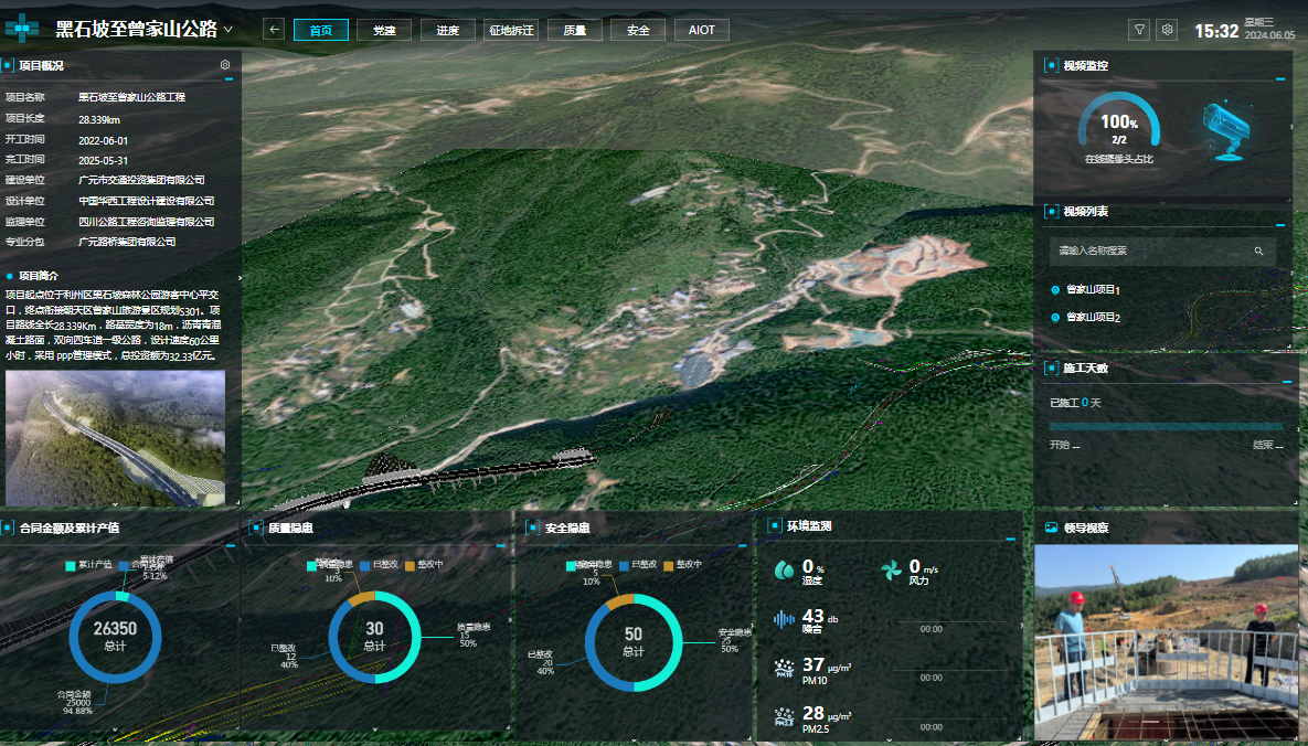 為強化風(fēng)險管控,黑曾路項目部引入智慧信息化可視管理平臺,綜合運用BIM、GIS、物聯(lián)網(wǎng)、大數(shù)據(jù)、人工智能、無人機等先進(jìn)技術(shù),構(gòu)建基于BIM+GIS+IOT+AI+PM的智慧工地平臺,實現(xiàn)進(jìn)度、質(zhì)量、安全等全方位智能化管控。