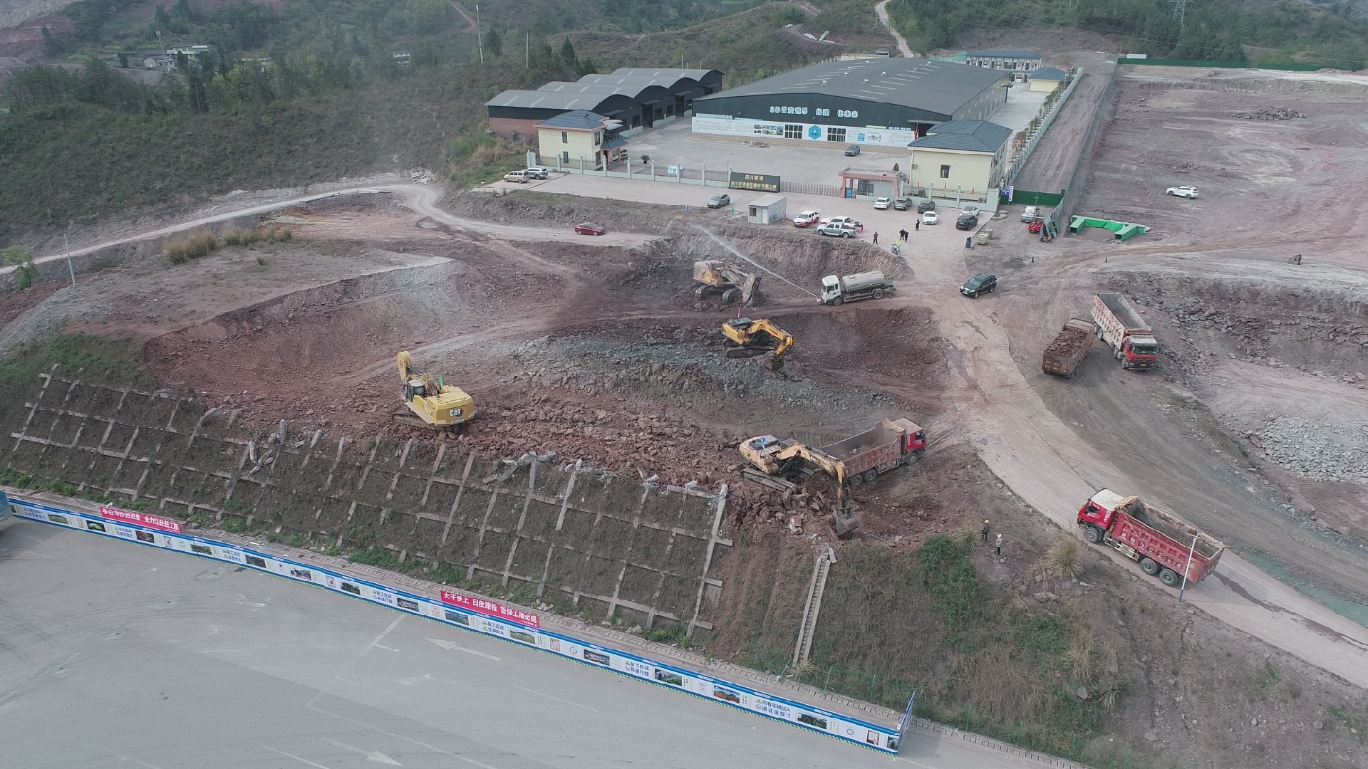 4月4日,正值清明假期,G542線旺蒼嘉川化工園區(qū)段臨時道路工程施工現(xiàn)場仍一片繁忙。